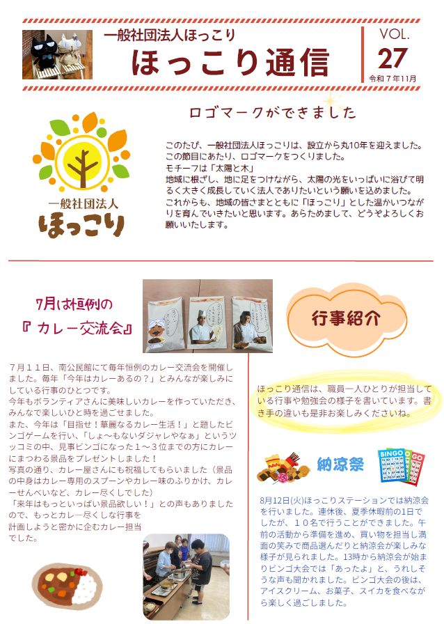 ☆最新号☆【ほっこり通信 No.27(令和7年11月発行)】